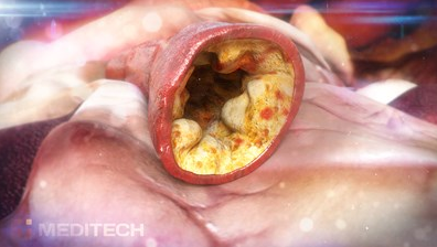 3d render of atherosclerosis. This plaque filled vessel is displayed as a cross section to fully see the state of the disease